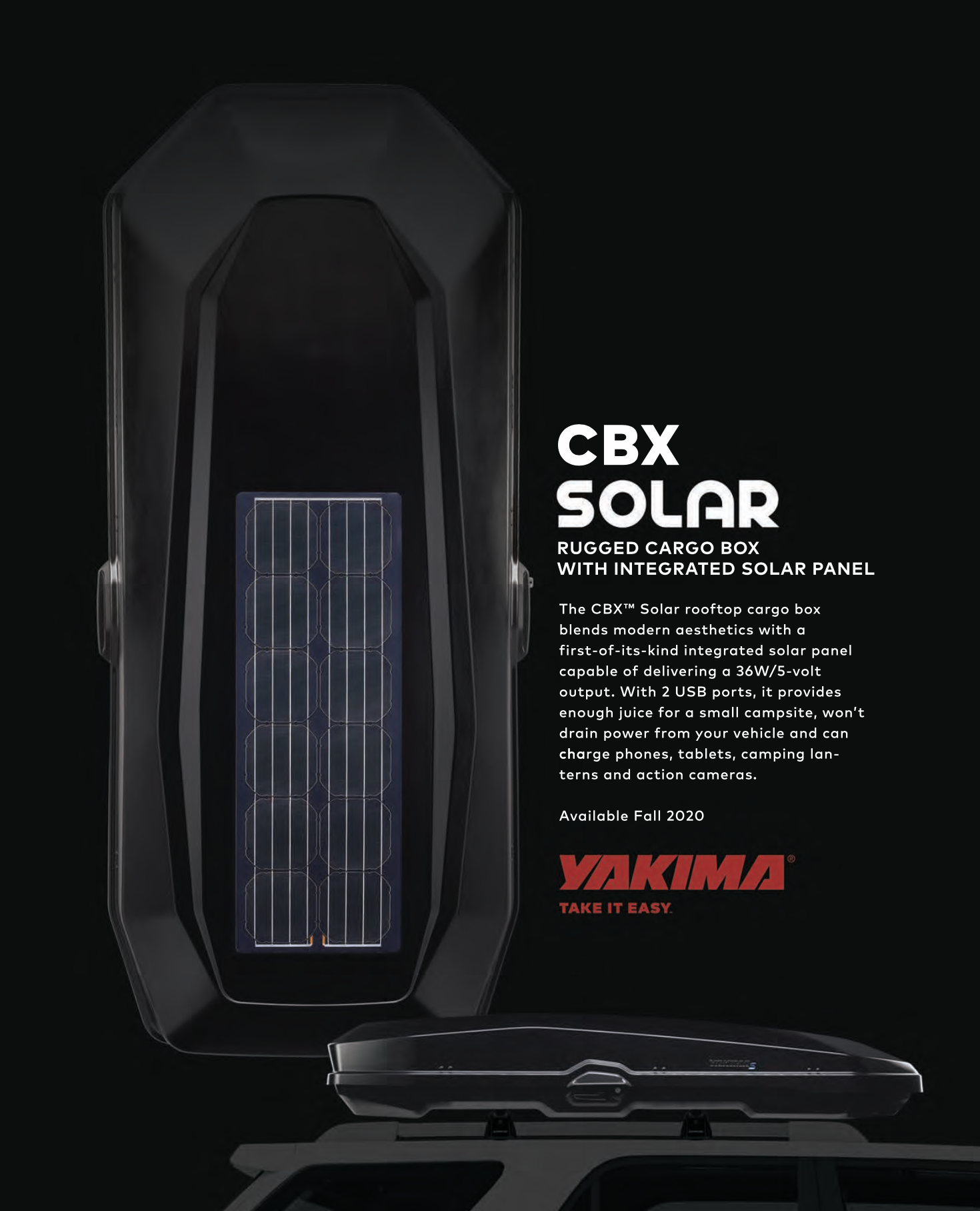 At Yakima I was part of many product launches. The new CBX cargo box was semi new territory for the brand. We hadn’t introduced a new shape in years and we launched a variant of this cargo box with an integrated solar panel - by popular demand.